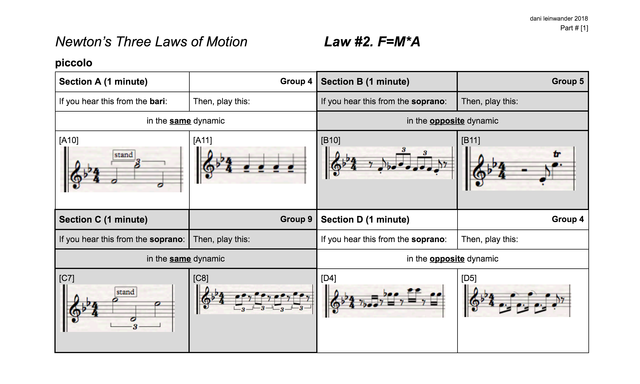 Piccolo part for the second movement (as an example of what the musicians are seeing for the second movement because it is not written in traditional musical notation--by looking at the score and piccolo part, you might have a better idea of how the piece is constructed and performed).